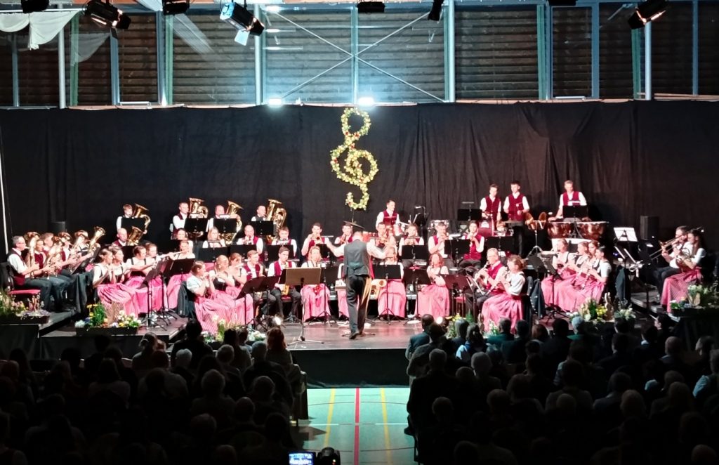 Grabenstätt. Das Frühjahrskonzert der Musikkapelle Grabenstätt übertraf in der Turnhalle wieder einmal alle Erwartungen. Rund 300 Besucher wurden über zwei Stunden nach allen Regeln der Blasmusik-Kunst unterhalten. Die 50-köpfige Musikkapelle von Dirigent Christian Bergmann zeigte eindrucksvoll, dass man in diversen Musikgenres zuhause ist und über ein schier grenzenloses Repertoire verfügt. Neben traditionellen und modernen Märschen, einer Polka, Filmmusik und einem Klassiker der Rockgeschichte nahm man die Zuhörer auch mit auf eine klangvolle Reise in die sagenhafte Opernwelt Richard Wagners. Dass sich der Musikverein und die Musikkapelle keine Nachwuchssorgen zu machen brauchen, wurde zu Beginn des zweiten Programmteils deutlich, als die rund 21-köpfige Jugendkapelle – ebenfalls unter der Leitung von Bergmann – ihren großen Auftritt hatte. Bei der Marsch-Zugabe „Mein Heimatland“ wurde der Nachwuchs von den großen Musikanten unterstützt. Was für ein tolles Klangerlebnis. Seit 20 Jahren schwingt Bergmann bereits mit viel Herzblut und Können in Grabenstätt den Dirigentenstab und dafür wurde er nun vor großem Publikum ausgezeichnet. „Er hat immer unsere Wünsche aufgegriffen, Ideen eingebracht und viele Jungmusikanten in die große Musikkapelle geführt. Auch wegen ihm sitzen heute wieder 50 Musikanten auf der Bühne“, lobte ihn der 1. Vorsitzende des Musikvereins und Musikant Franz Klauser und strich Bergmanns großes musikalisches Können, Gehör und pädagogisches Talent heraus. Neben einer Urkunde erhielt der Geehrte ein Fotobuch mit vielen schönen Bildern und unvergesslichen Momenten aus 20 gemeinsamen Jahren. Passend dazu erklang der Marsch „Jubelklänge“.